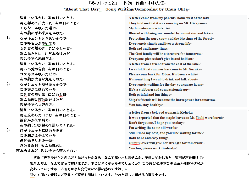 retired, I went over it again, and came up with this song. The song was completed. However, both the lyrics and composition are